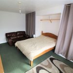A large furnished room with TV point, double glazed window to the rear and wash basin.