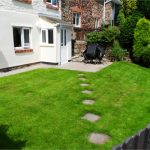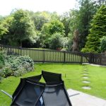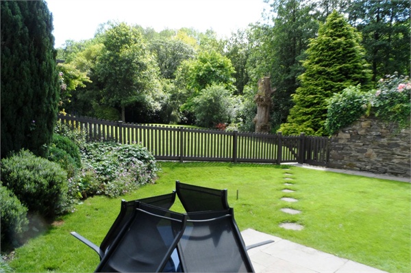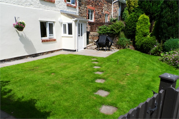 Lawned garden and patio to the rear.