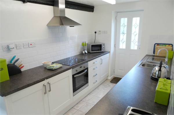 Modern well fitted kitchen, fully equipped, door to rear garden.