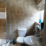 Well fitted shower room with tiled surround, WC and washbasin