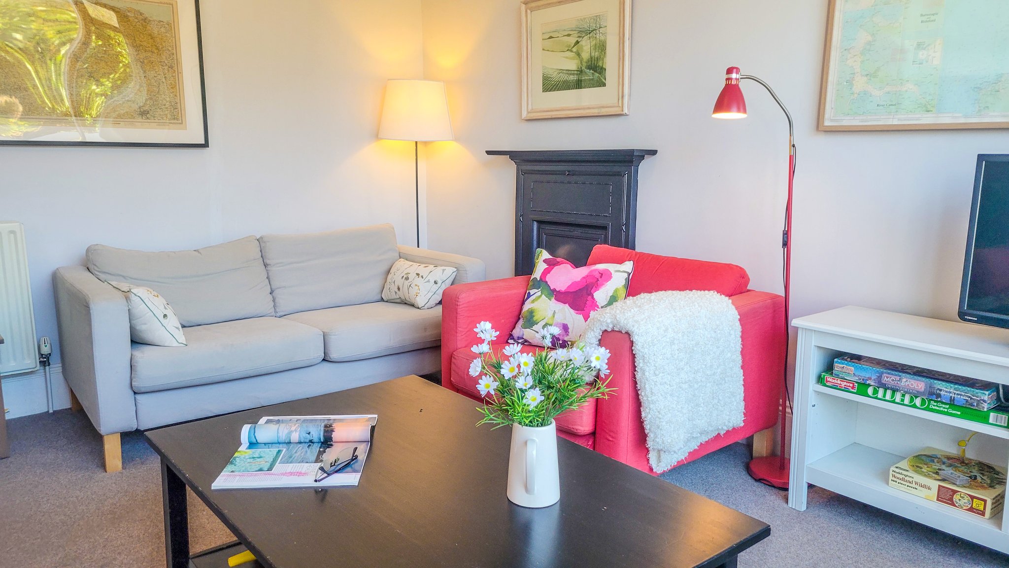 The light-filled lounge with its window seat is a peaceful retreat after a day at the beach or on the coast path. Set just a short walk from sandy coves and dramatic cliff walks, and close to local pubs, cafes, and essential amenities, this coastal home is move-in ready and has already proven itself as a popular holiday let.
